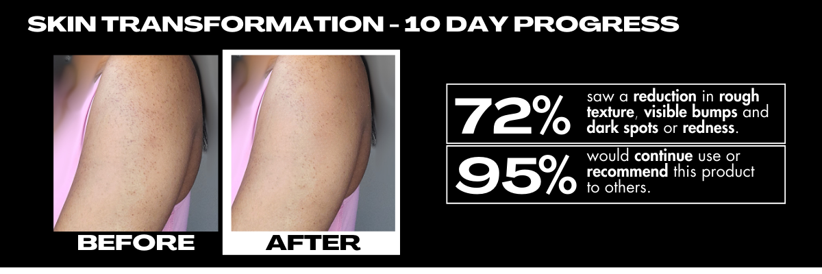 Skin suffering from Keratosis Pilaris (KP) or any other textured skin condition where you may want to soften, dry, rough or thick skin.